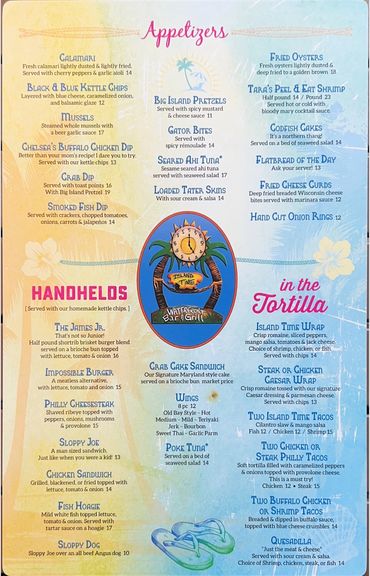 Our menu’s got something for every salty soul — from fresh-off-the-boat seafood to burgers, tacos, and Florida-famous cocktails served in the best way we know how...with waterfront views!